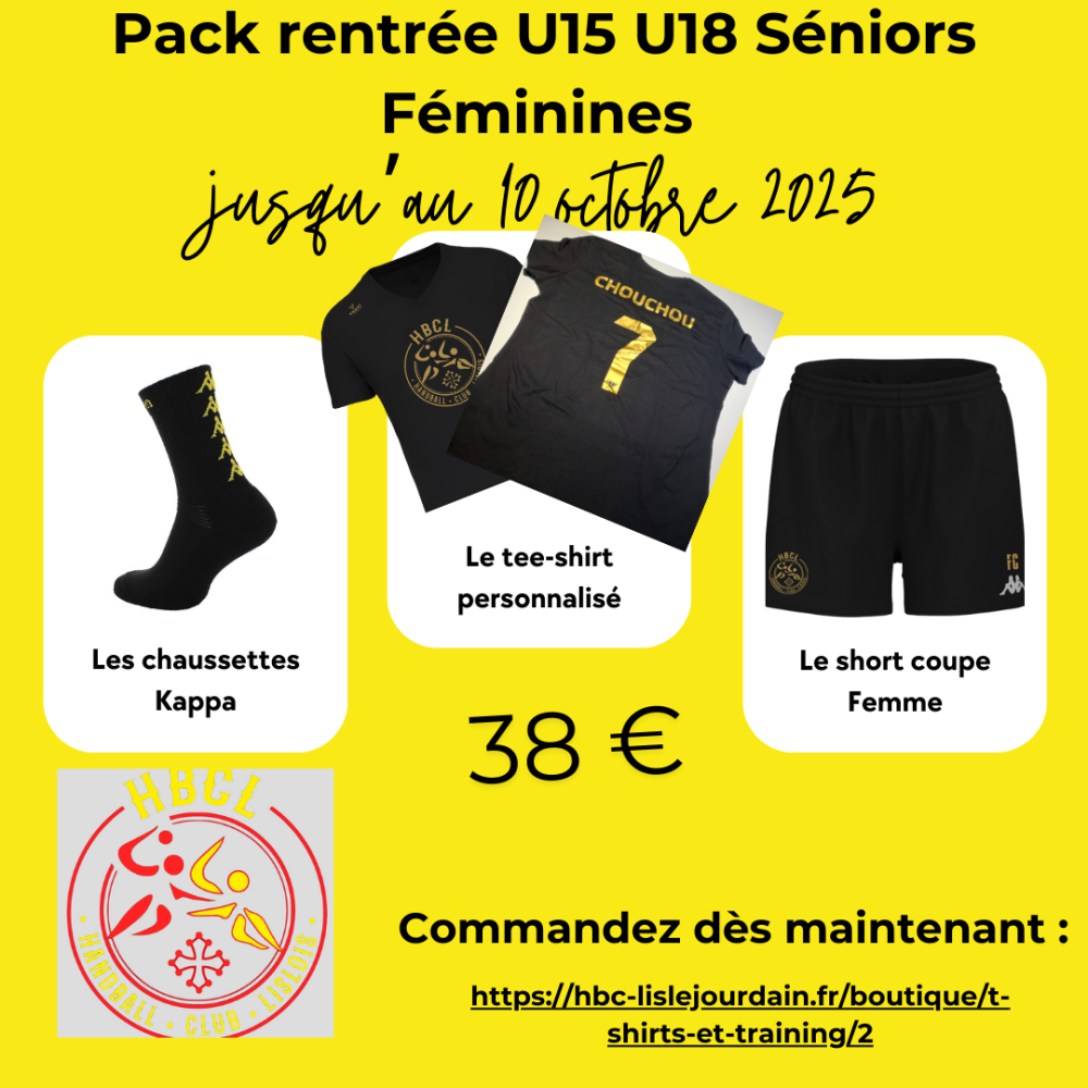 - un tee-shirt noir coton personnalisé (préciser numéro + inscription nom/surnom en commentaire)