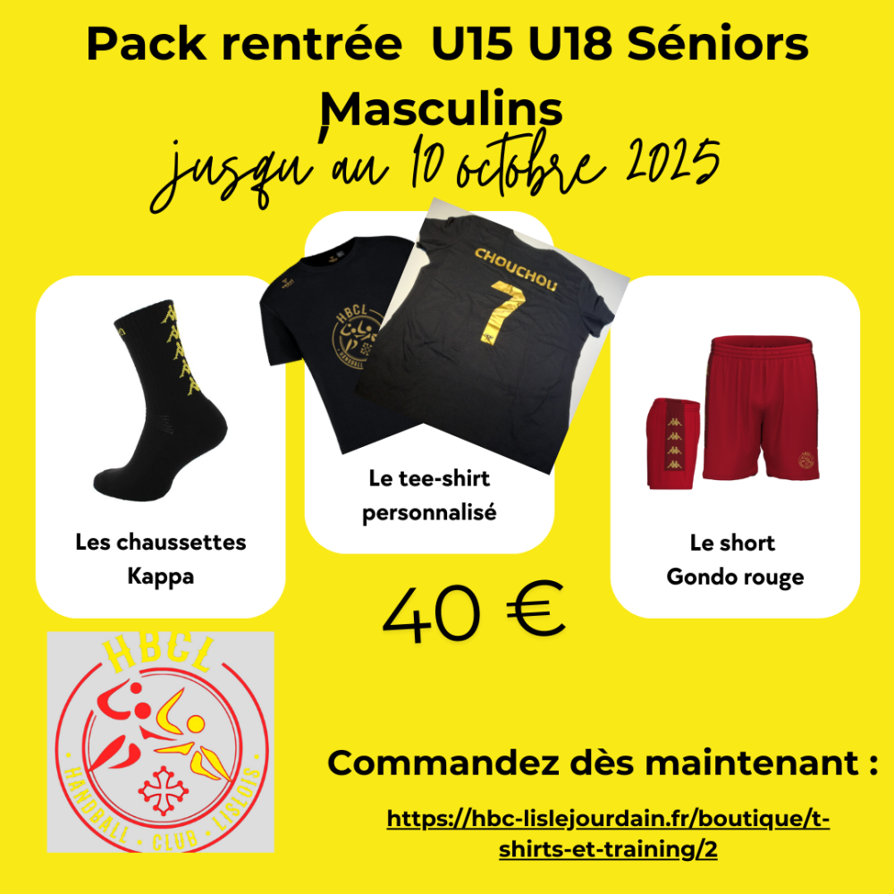 - un tee-shirt noir coton personnalisé (préciser numéro + inscription nom/surnom en commentaire)