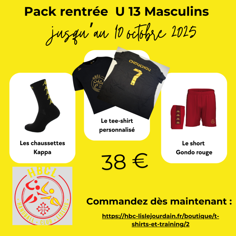 - un tee-shirt noir coton personnalisé (préciser numéro + inscription nom/surnom en commentaire)