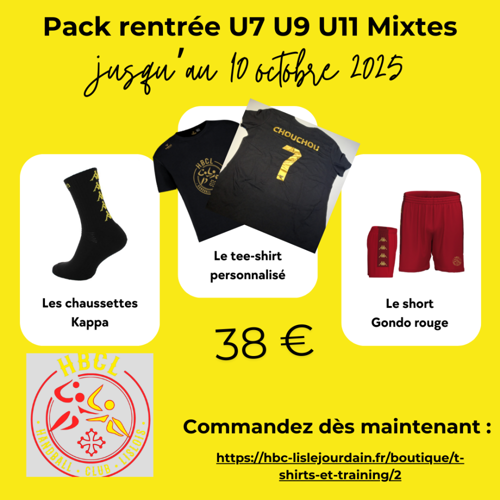 - un tee-shirt noir coton personnalisé (préciser numéro + inscription nom/surnom en commentaire)